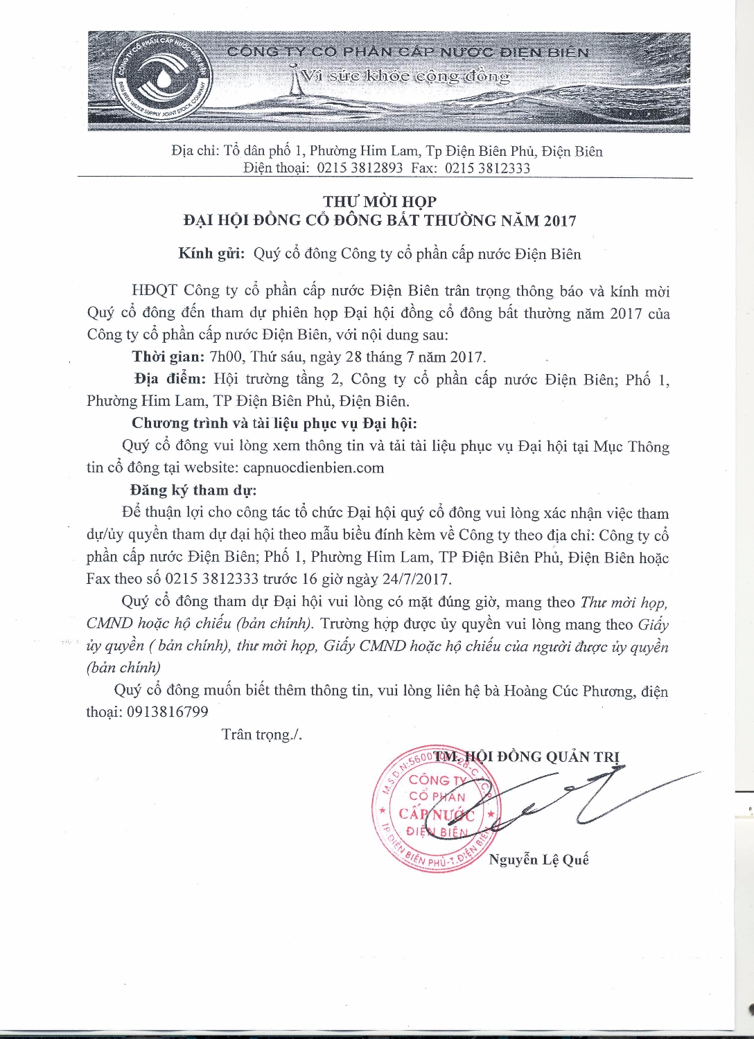 Thư mời họp Đại hội đồng cổ đông bất thường năm 2017
